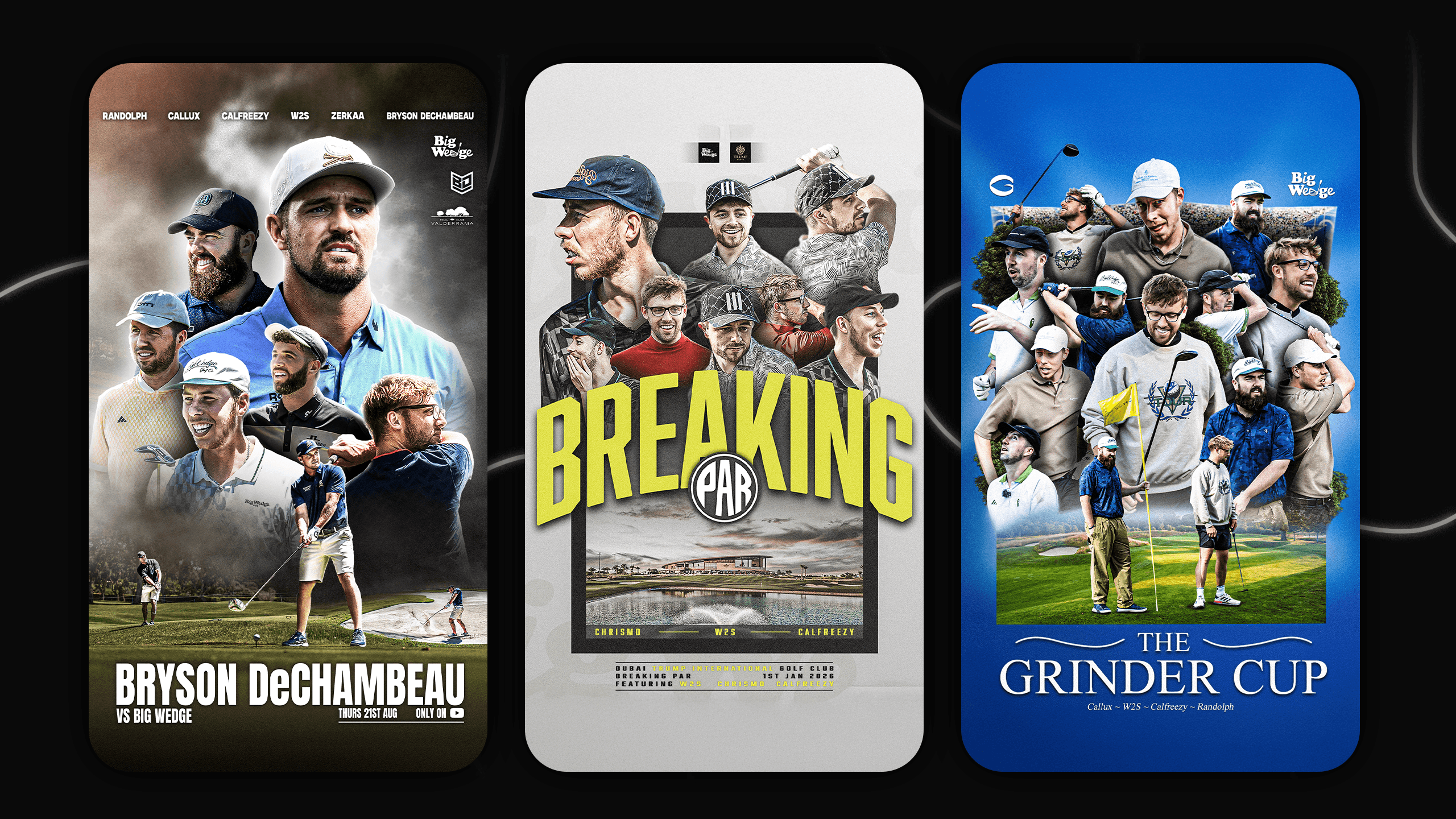 Over a six-month period, we partnered with Big Wedge to deliver ongoing design support focused on growing engagement and visibility for their YouTube channel. Our role was to act as an embedded visual partner, producing consistent, performance-led social and YouTube visuals designed to support channel promotion and audience growth. Beyond day-to-day visuals, we collaborated across multiple campaigns, including the Creator Golf Club launch. This ongoing relationship allowed us to refine visual language over time, test what resonated with their audience, and build a cohesive system that supported long-term growth rather than one-off results.