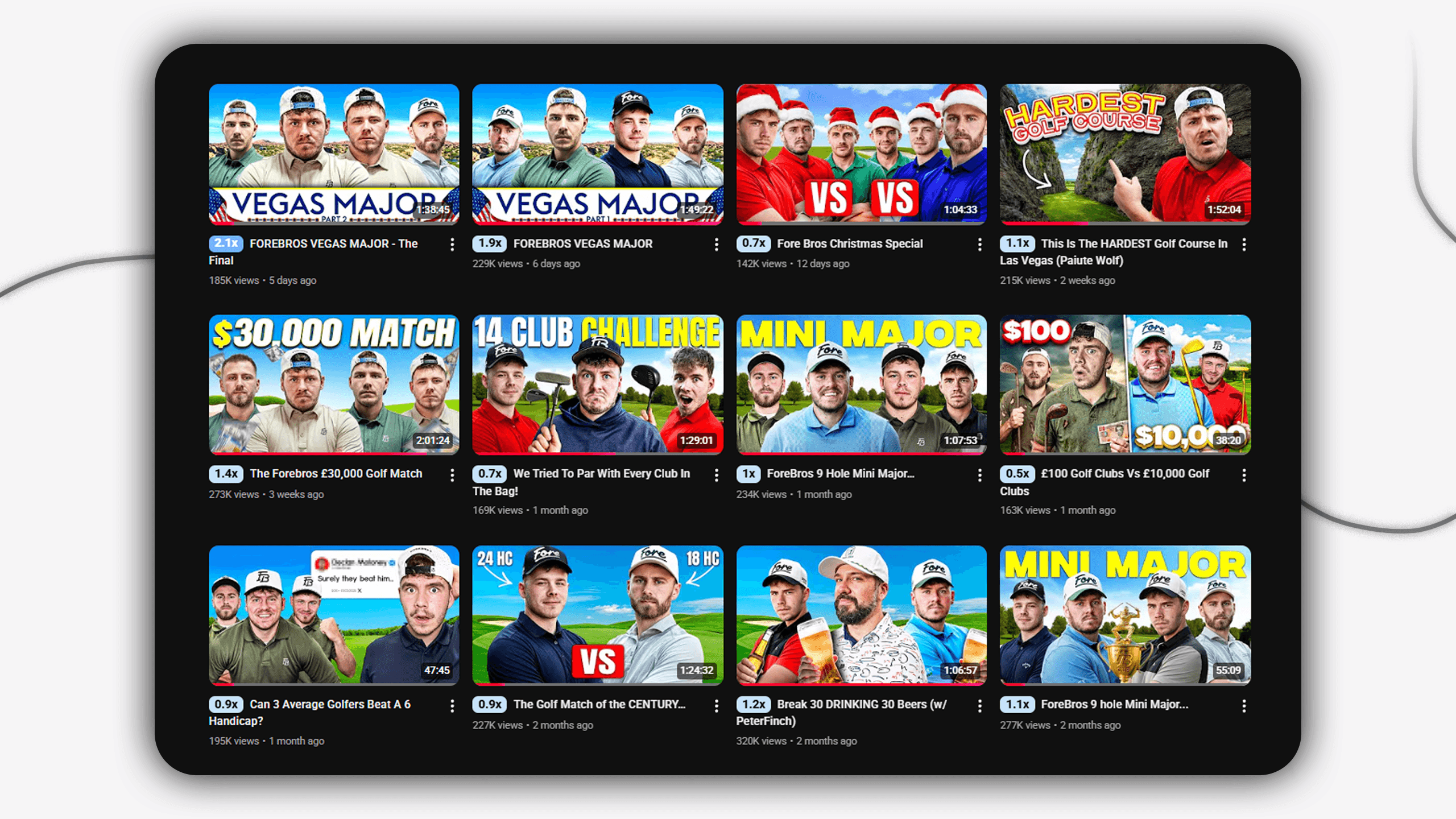Over the past year, I partnered with Fore Brothers to overhaul their YouTube visuals and bring consistency to the channel. By replacing inconsistent packaging with a clear visual system, we increased CTR and stabilized performance, helping the channel reach consistent ~200K views per video. A strong team effort, with visuals playing a key role in recognition and click-through.